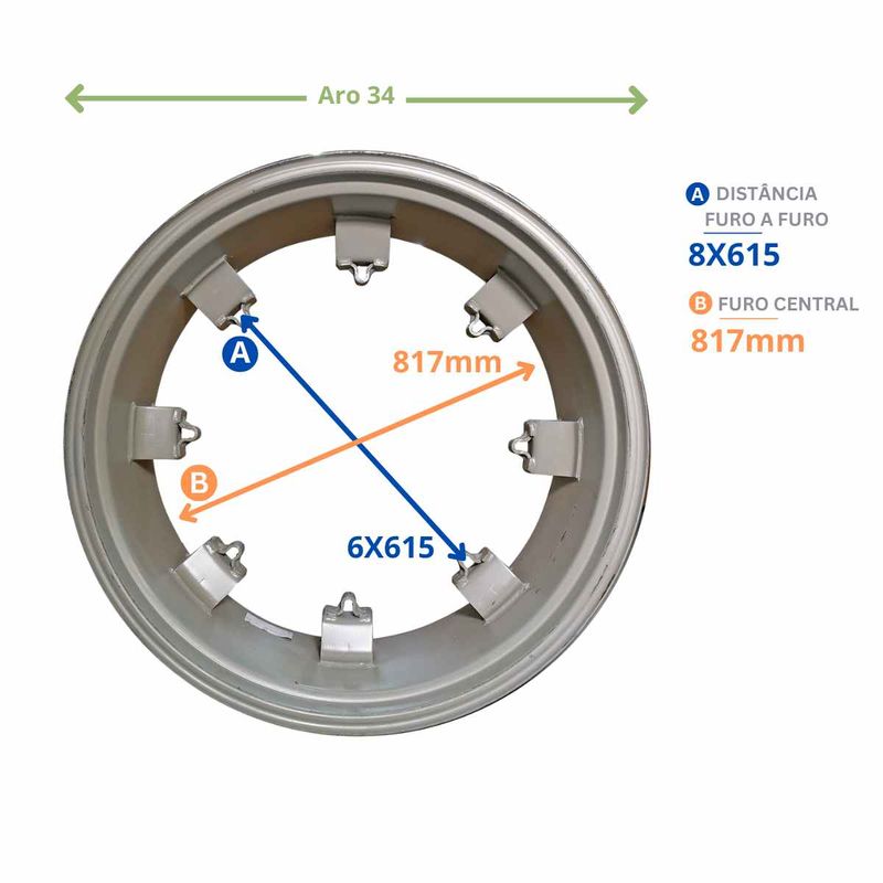 Pneus e rodasRodasAro de rodaAro Roda W16x34 Traseira 8 Presilhas Simples Valtra 80079100 Rodaco