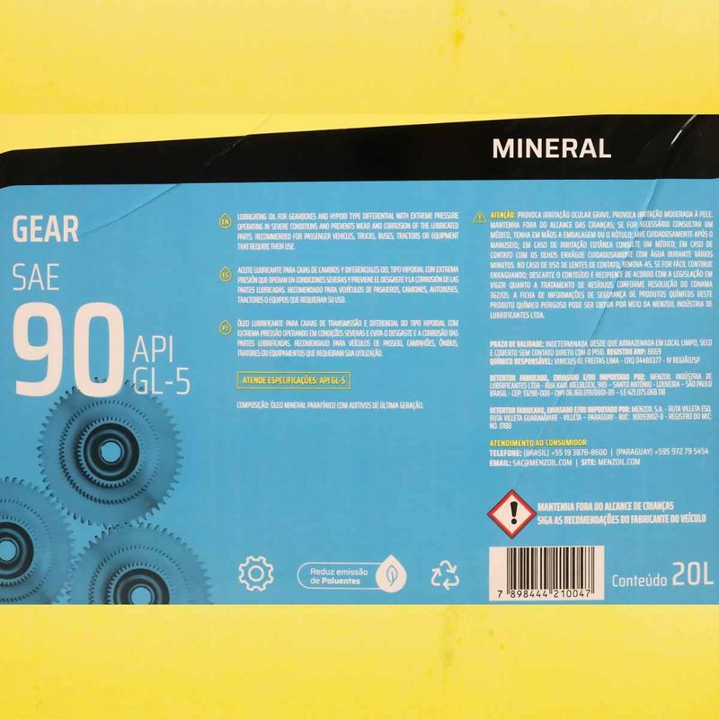 Óleo Gear EP SAE 90 GL-5 20L SAE90GL520L Menzoil